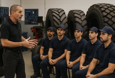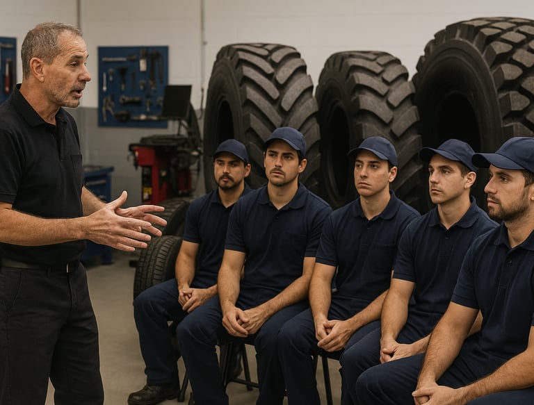 Capacitação para equipes em todos os níveis, com foco em pneus de carga, agrícola e passeio.